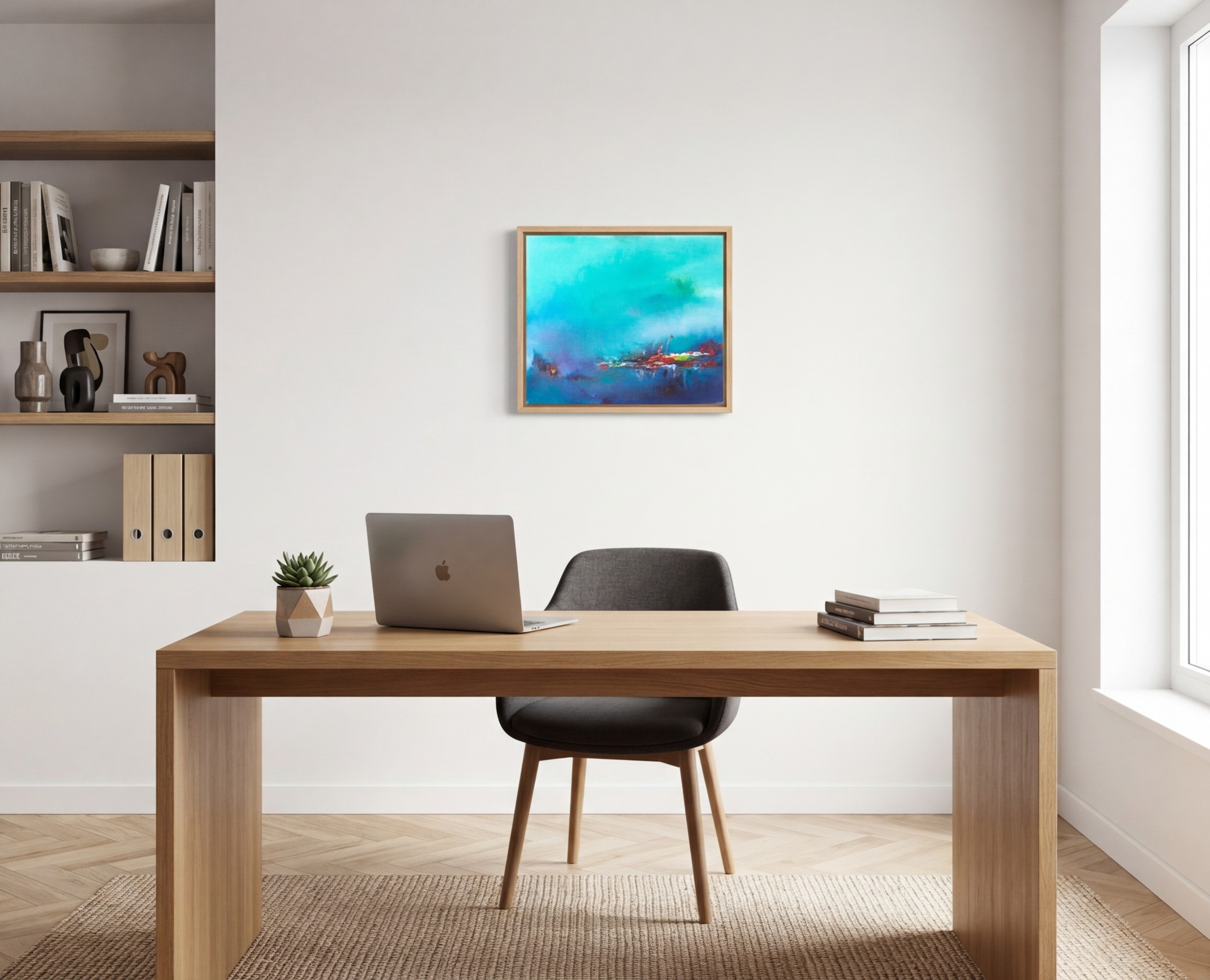 Harmonie : Le bleu s’accorde parfaitement avec les formes abstraites pour créer une composition fluide, idéale pour les intérieurs contemporains et minimalistes.